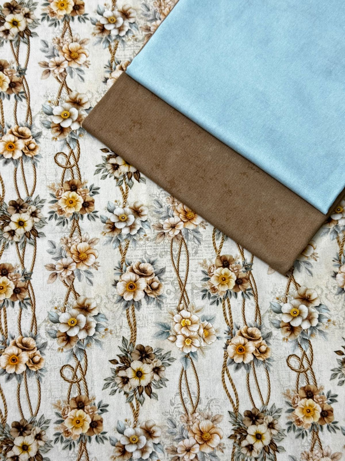Kit TC160 Tricoline Floral Cordão de Flores contendo 3 cortes: