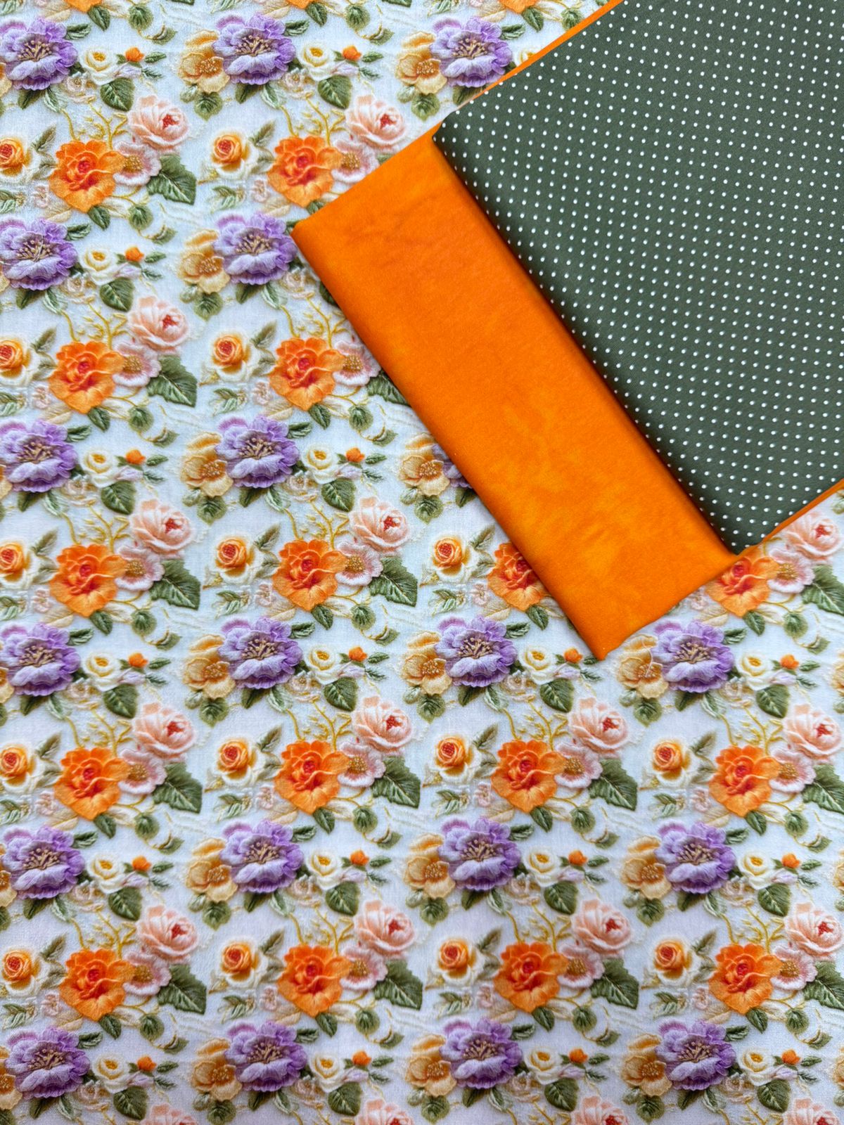 Kit TC162 Tricoline floral laranja contendo 3 cortes: