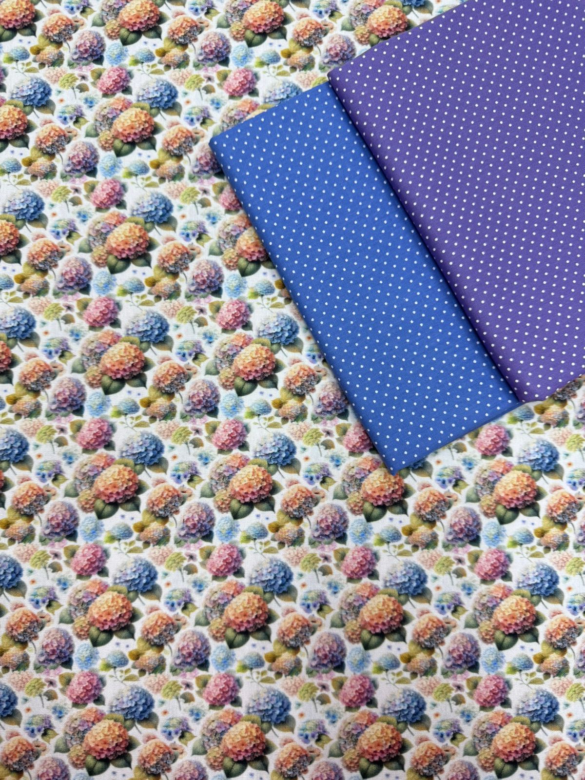 1 corte TC164 Tricoline Buque de Hortênsias medindo 0,55 x 1,50 cm.