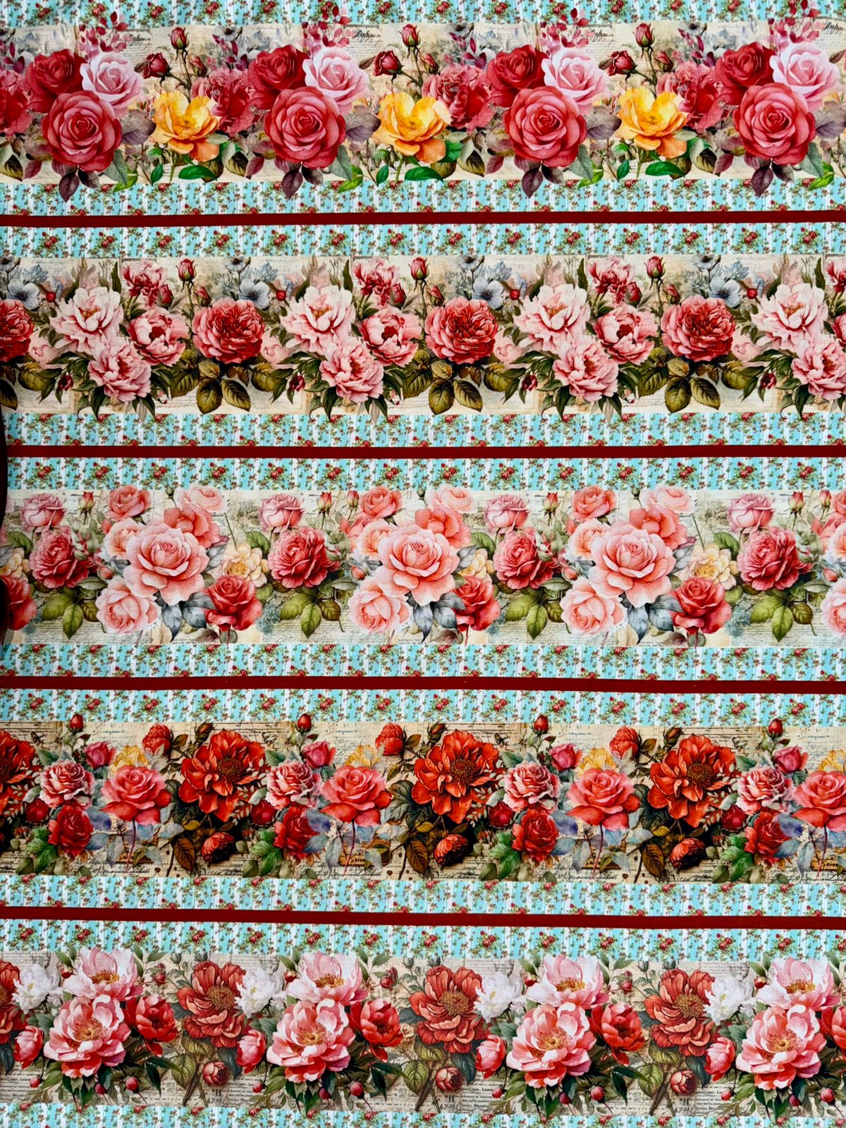 Tecido Tricoline Estampado Digital Barrado medindo 55cm x 150cm. Faixas perfeitas para trabalhos como apliques em toalhas, bolsas, barrados de cortinas, bandos entre outros projetos. Com 10 faixas por corte, cada faixa possui em media 14,5 cm, nossos tecidos possuem também um ótimo custo benefício, principalmente para as artesãs que irão vender as peças prontas.