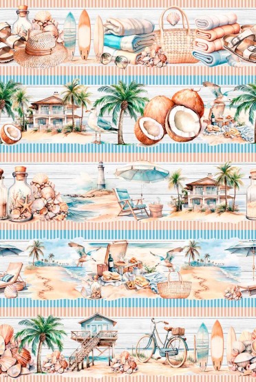 Tecido Tricoline Estampado Digital Barrado medindo 55cm x 150cm. Faixas perfeitas para trabalhos como apliques em toalhas, bolsas, barrados de cortinas, bandos entre outros projetos. Com 10 faixas por corte, cada faixa possui em media 14,5 cm, nossos tecidos possuem também um ótimo custo benefício, principalmente para as artesãs que irão vender as peças prontas.