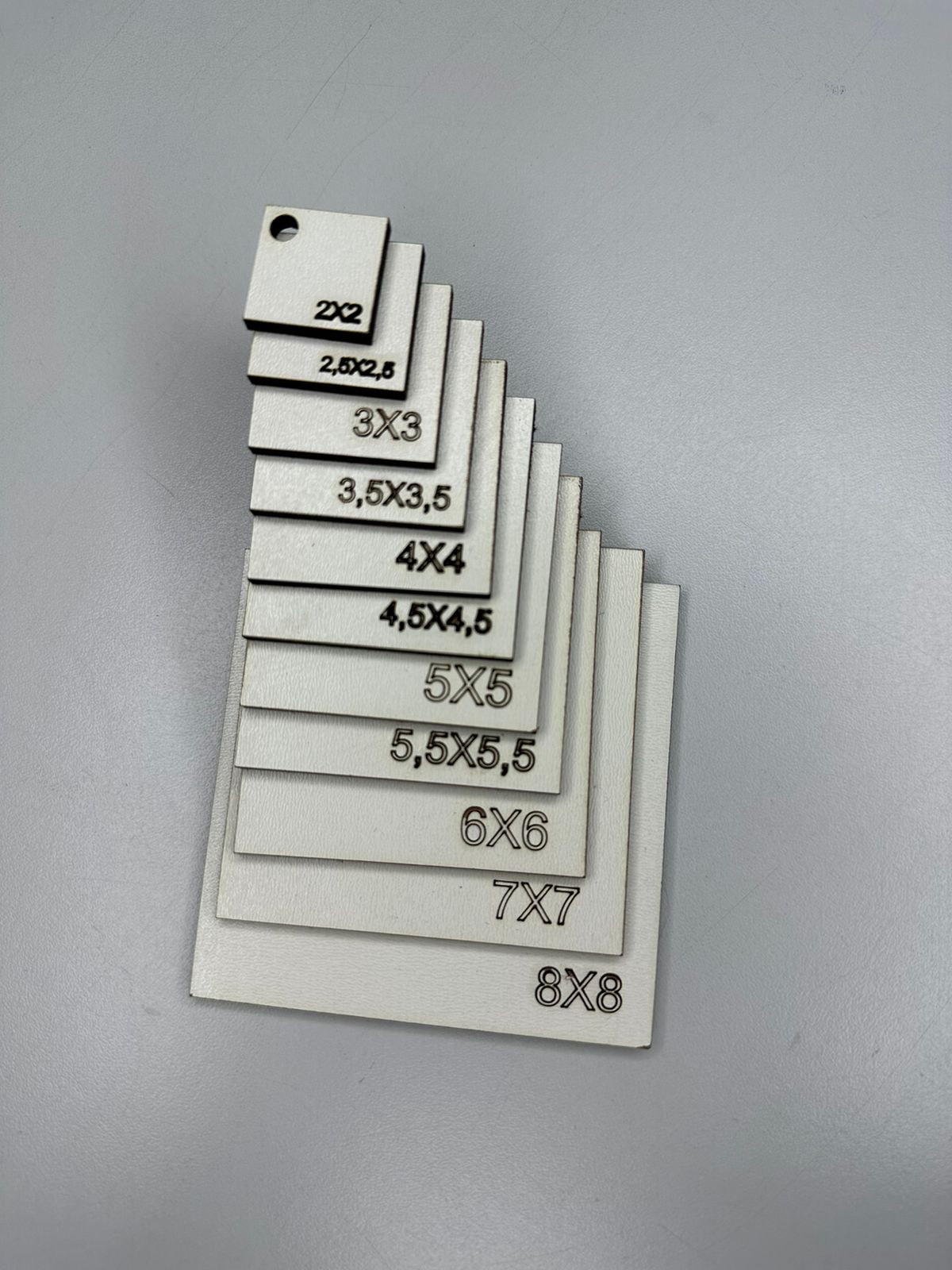 1 Régua caixinha de leite medindo 2 X 2 cm.