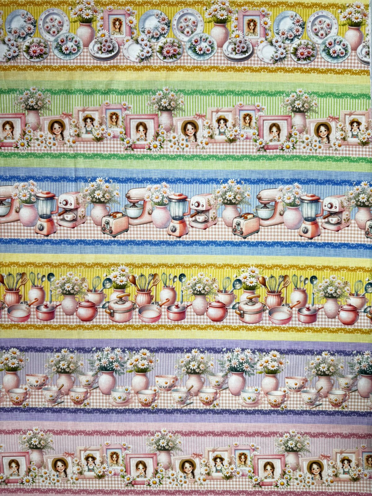 Tecido Tricoline Estampado Digital Barrado medindo 55cm x 150cm