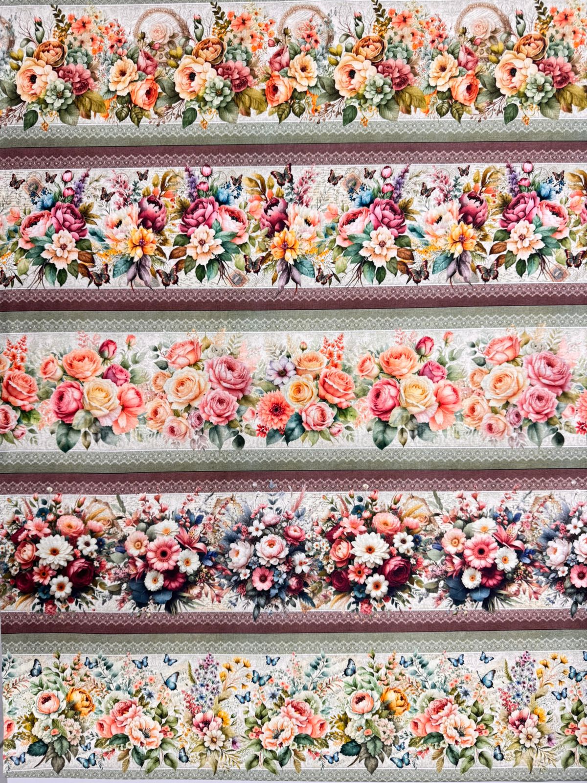 Tecido Tricoline Estampado Digital Barrado medindo 55cm x 150cm. Faixas perfeitas para trabalhos como apliques em toalhas, bolsas, barrados de cortinas, bandos entre outros projetos. Com 10 faixas por corte, cada faixa possui em media 14,5 cm, nossos tecidos possuem também um ótimo custo benefício, principalmente para as artesãs que irão vender as peças prontas.
