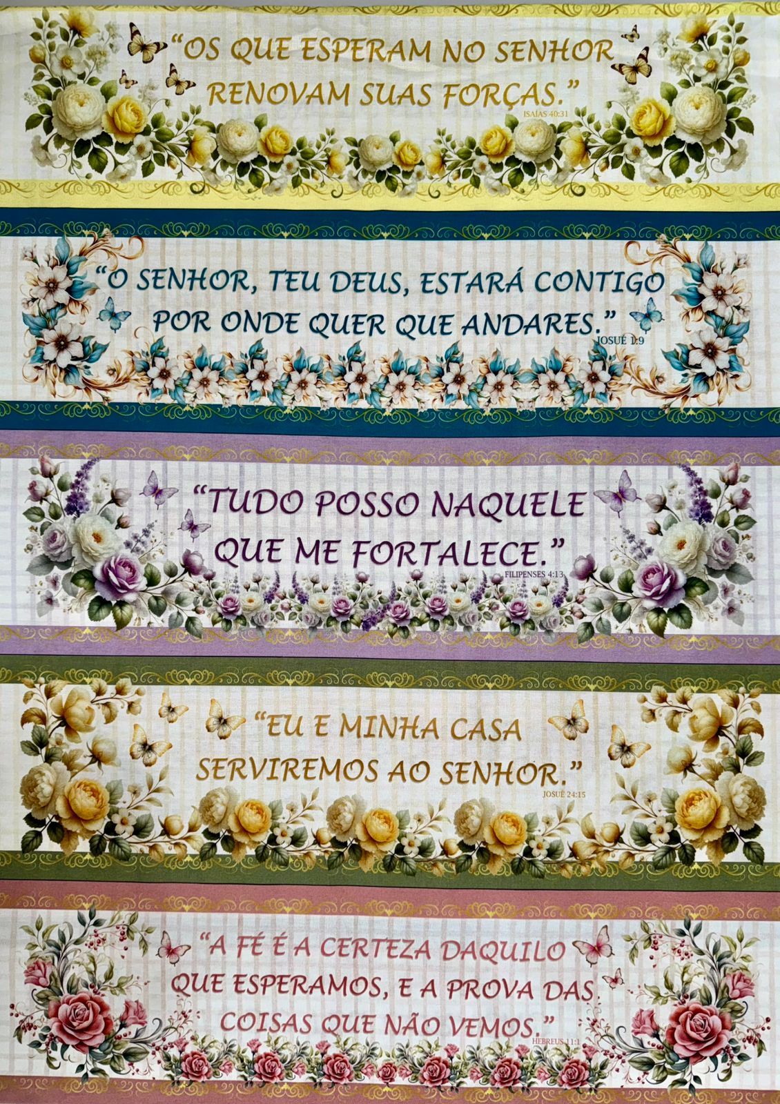 Tecido Tricoline Estampado Digital Barrado medindo 55cm x 150cm. Faixas perfeitas para trabalhos como apliques em toalhas, bolsas, barrados de cortinas, bandos entre outros projetos. Com 10 faixas por corte, cada faixa possui em media 14,5 cm, nossos tecidos possuem também um ótimo custo benefício, principalmente para as artesãs que irão vender as peças prontas.