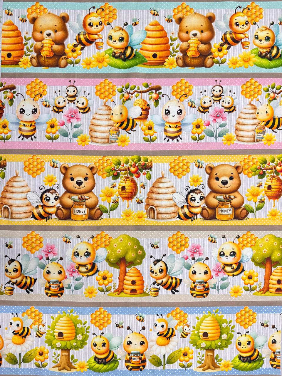 Tecido Tricoline Estampado Digital Barrado medindo 55cm x 150cm. Faixas perfeitas para trabalhos como apliques em toalhas, bolsas, barrados de cortinas, bandos entre outros projetos. Com 10 faixas por corte, cada faixa possui em media 14,5 cm, nossos tecidos possuem também um ótimo custo benefício, principalmente para as artesãs que irão vender as peças prontas.
