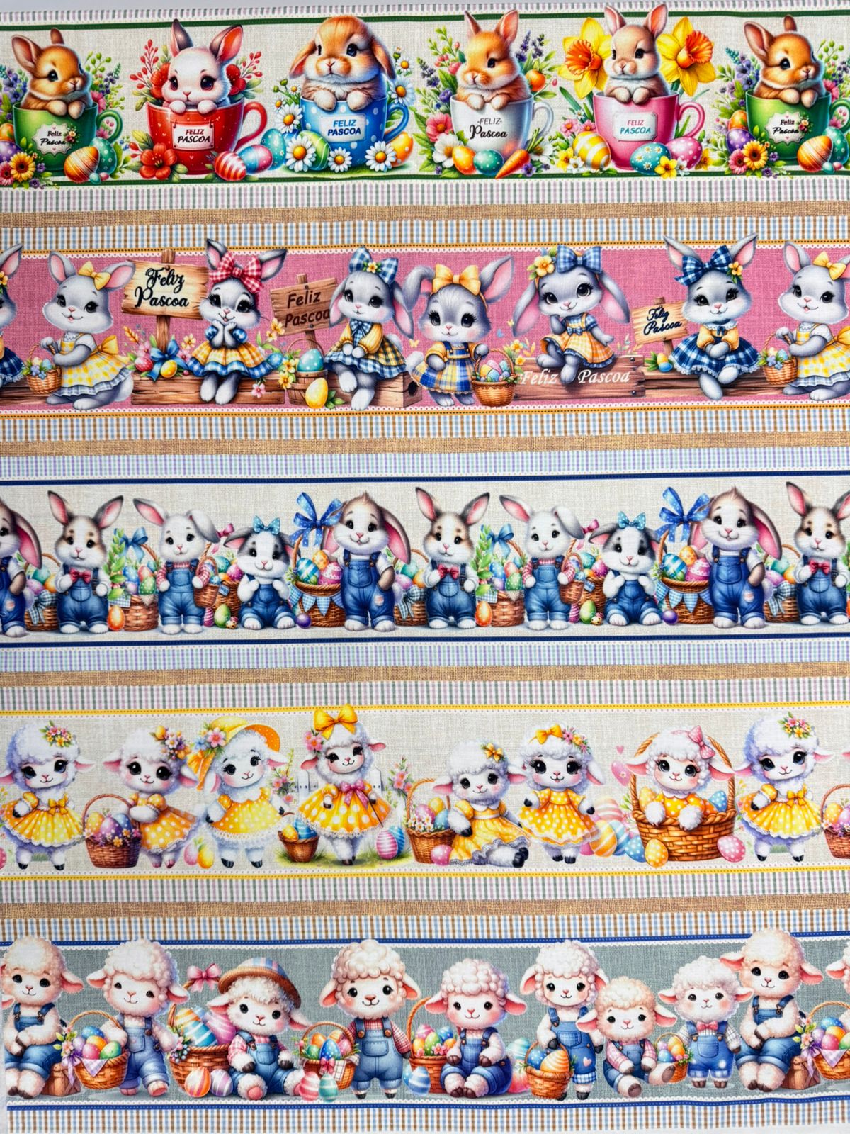 Tecido Tricoline Estampado Digital Barrado medindo 55cm x 150cm. Faixas perfeitas para trabalhos como apliques em toalhas, bolsas, barrados de cortinas, bandos entre outros projetos. Com 10 faixas por corte, cada faixa possui em media 15 cm, nossos tecidos possuem também um ótimo custo benefício, principalmente para as artesãs que irão vender as peças prontas.