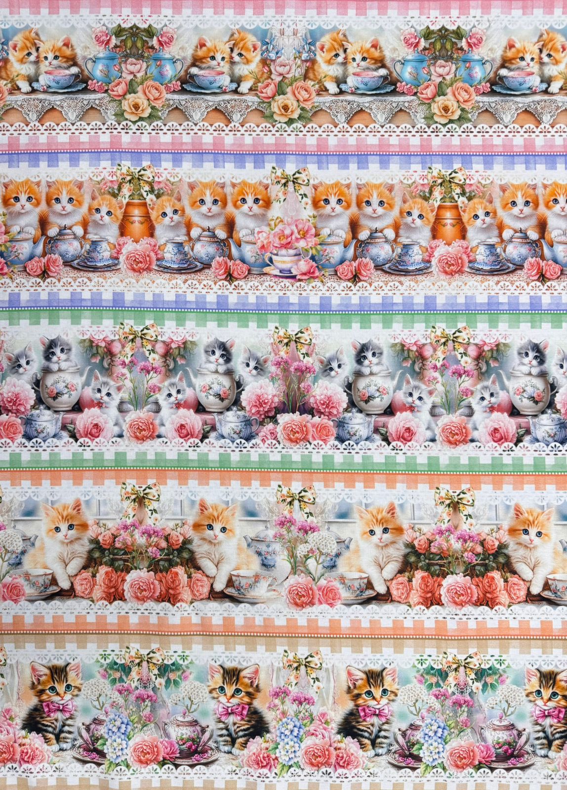 Tecido Tricoline Estampado Digital Barrado medindo 55cm x 150cm. Faixas perfeitas para trabalhos como apliques em toalhas, bolsas, barrados de cortinas, bandos entre outros projetos. Com 10 faixas por corte, cada faixa possui em media 14,5 cm, nossos tecidos possuem também um ótimo custo benefício, principalmente para as artesãs que irão vender as peças prontas.