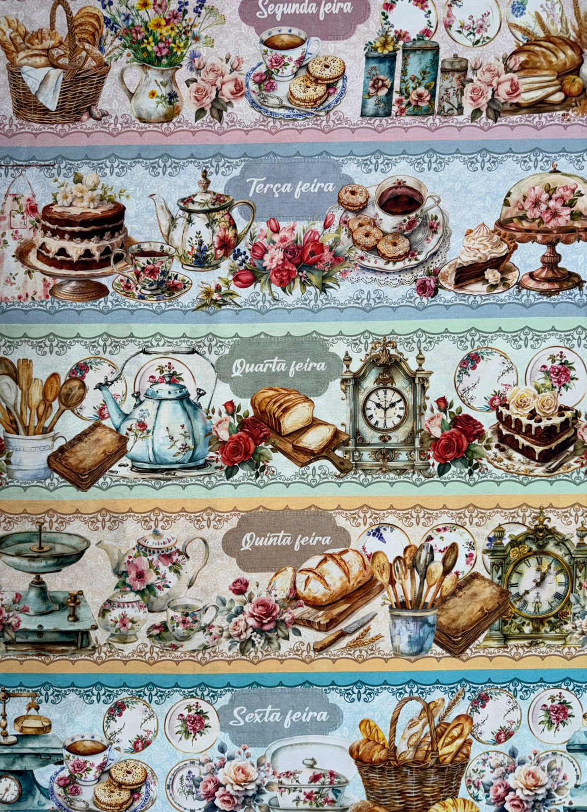 Tecido Tricoline Estampado Digital Barrado medindo 55cm x 150cm. Faixas perfeitas para trabalhos como apliques em toalhas, bolsas, barrados de cortinas, bandos entre outros projetos. Com 10 faixas por corte, cada faixa possui em media 14,5 cm, nossos tecidos possuem também um ótimo custo benefício, principalmente para as artesãs que irão vender as peças prontas.