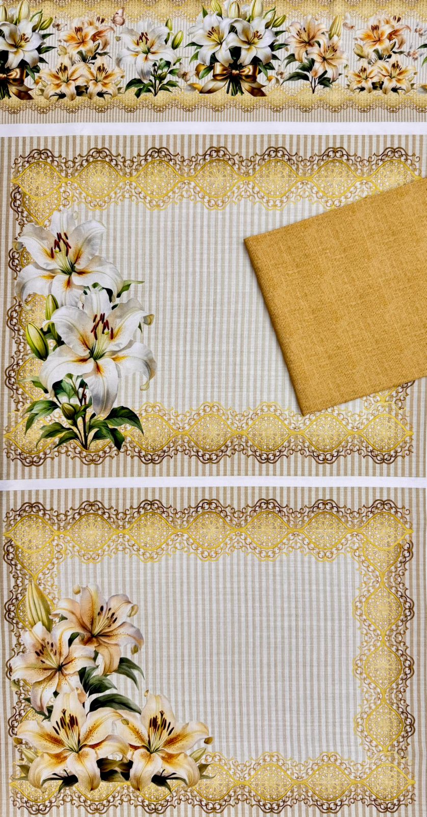 1 corte Jogo Americano em Sarja Lírios (4 peças) + 1 faixa de barrado