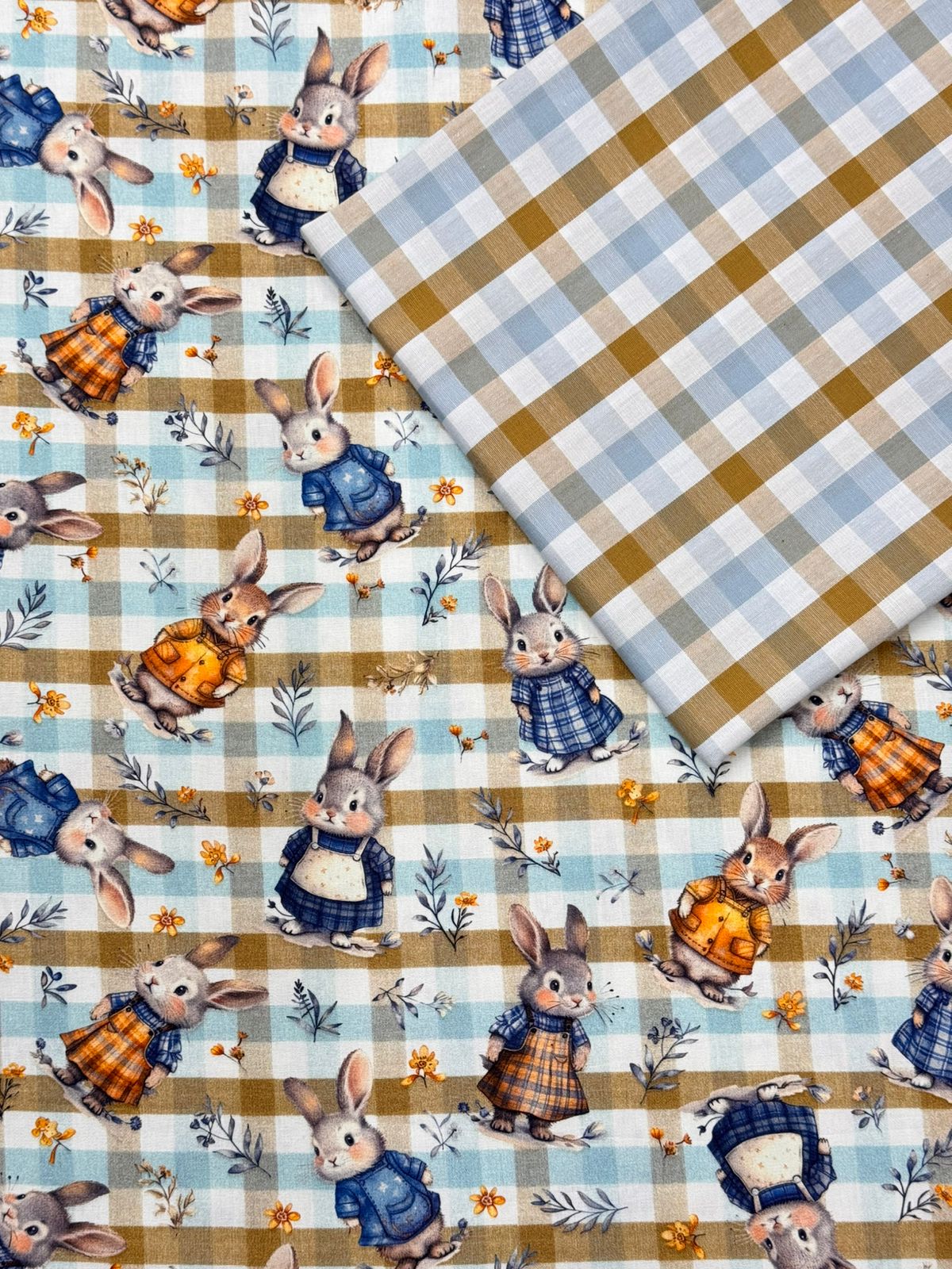 Kit TC191- Kit Tricoline Coelhos e Ramos Xadrez contendo 2 cortes: