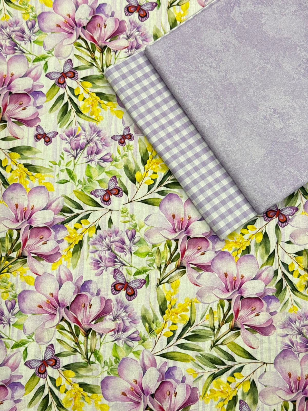 Kit TC207 Tricoline Lírios com borboletas contendo 3 cortes: