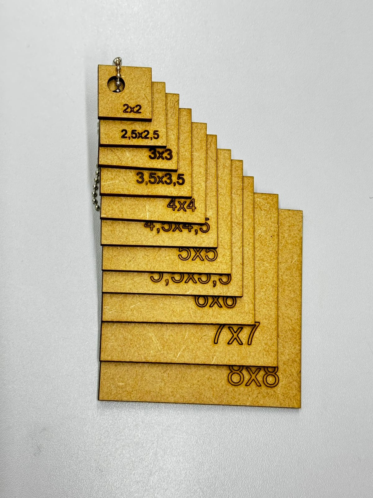 1 Régua caixinha de leite medindo 2 X 2 cm.