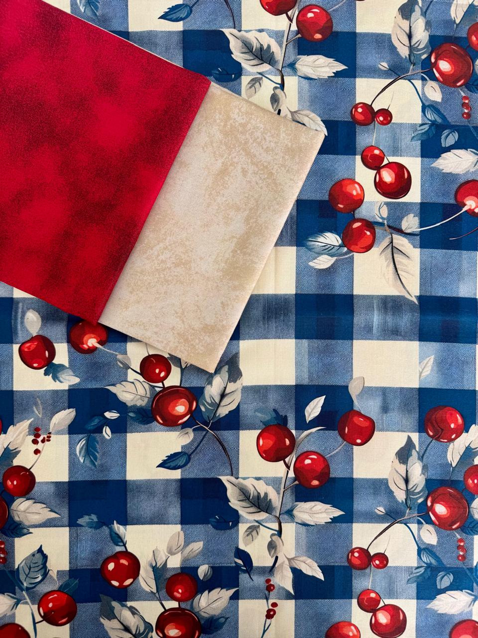Kit TC213 Tricoline Cerejas Fundo Xadrez contendo 3 cortes: