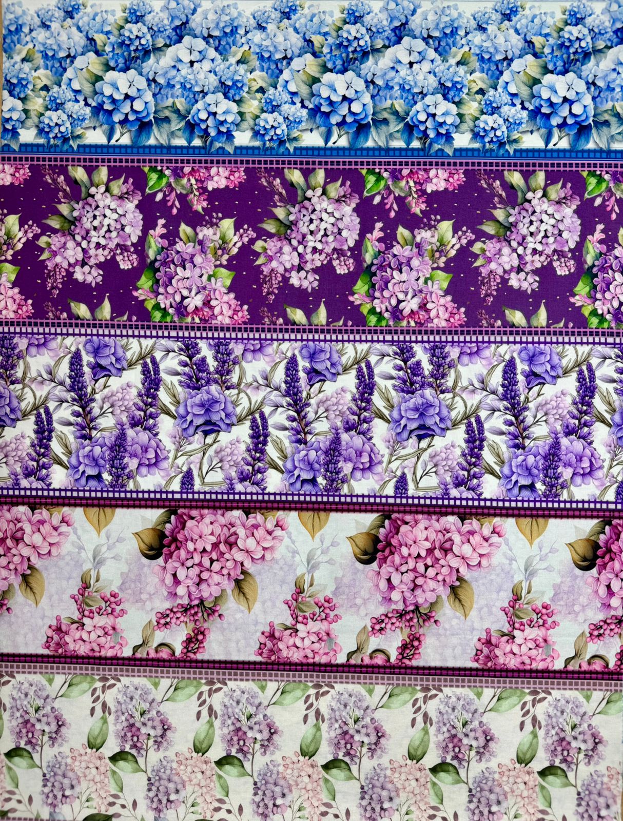 1 corte BR351 Barrado Encanto das Hortênsias medindo 0,55 x 1,50 cm.