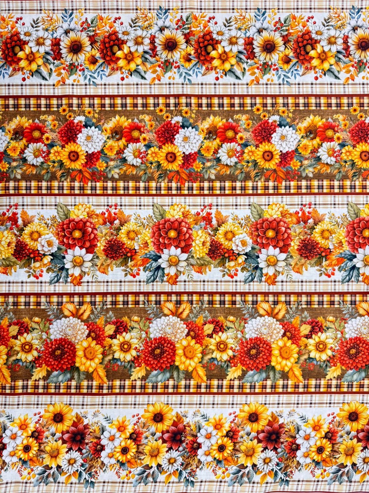 Tecido Tricoline Estampado Digital Barrado medindo 55cm x 150cm. Faixas perfeitas para trabalhos como apliques em toalhas, bolsas, barrados de cortinas, bandos entre outros projetos. Com 10 faixas por corte, cada faixa possui em media 14,5 cm, nossos tecidos possuem também um ótimo custo benefício, principalmente para as artesãs que irão vender as peças prontas.