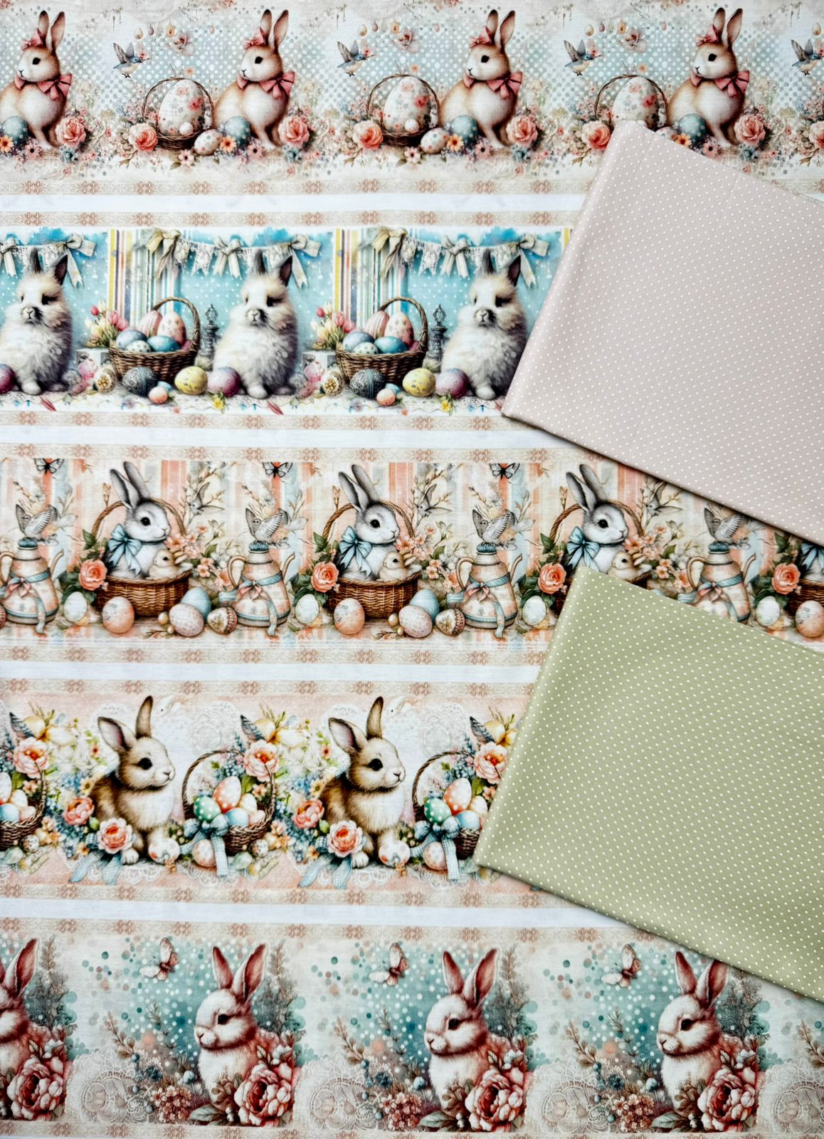 1 corteĀ BR367 Barrado Coelhos e OvosĀ medindo 0,55Ā x 1,50 cm.Ā